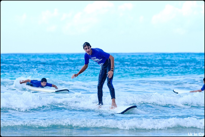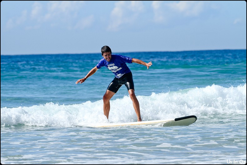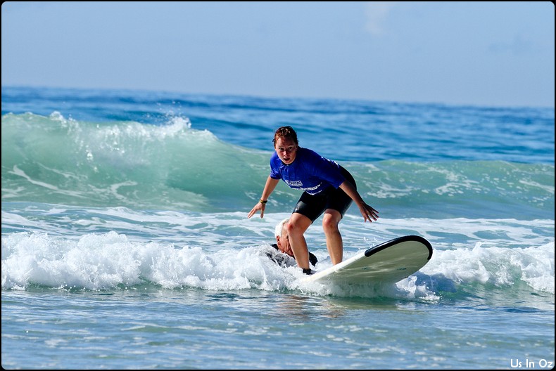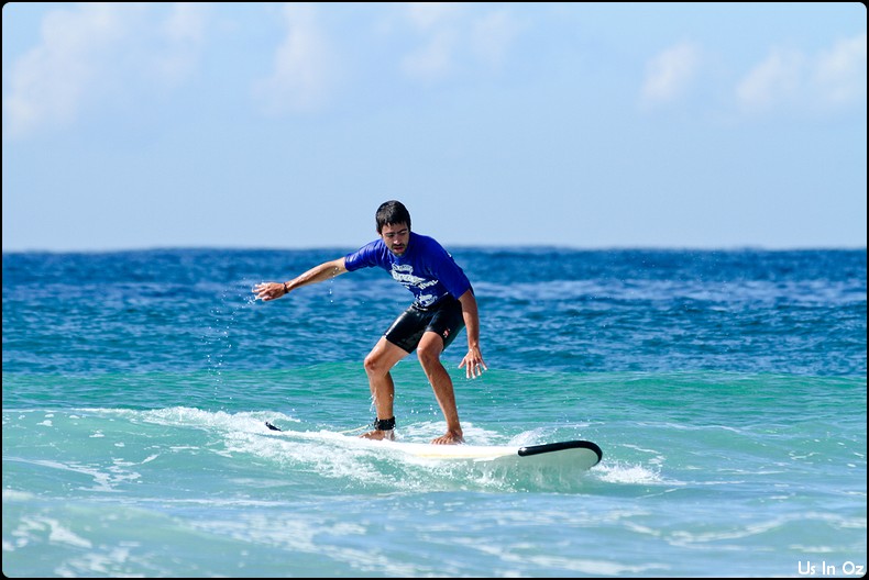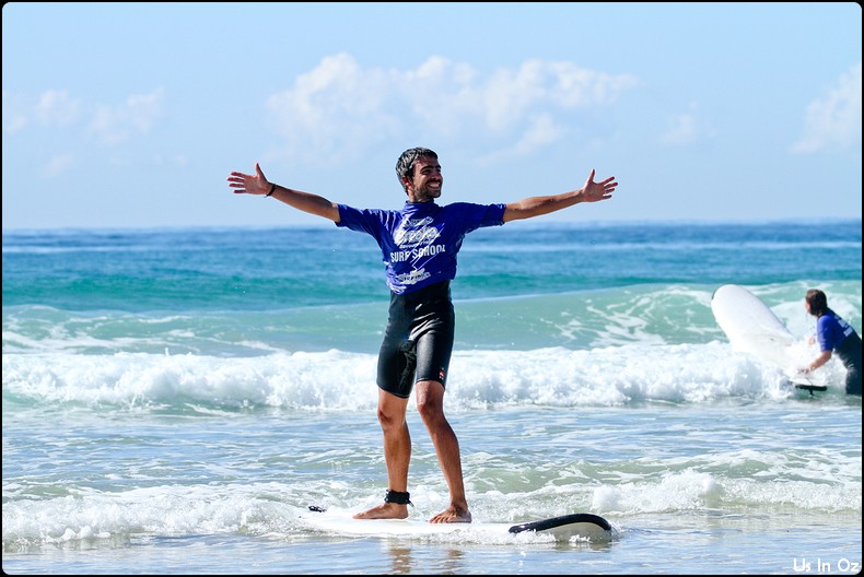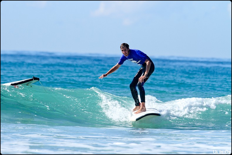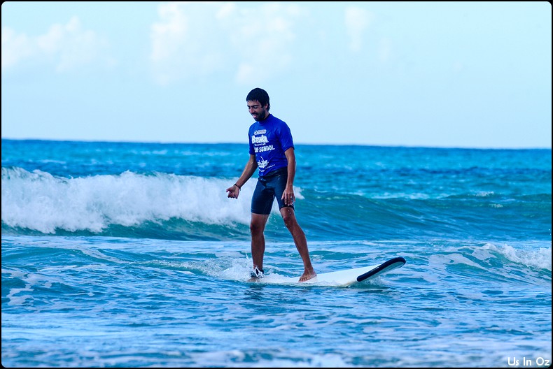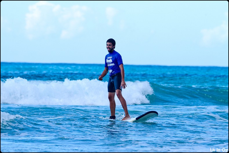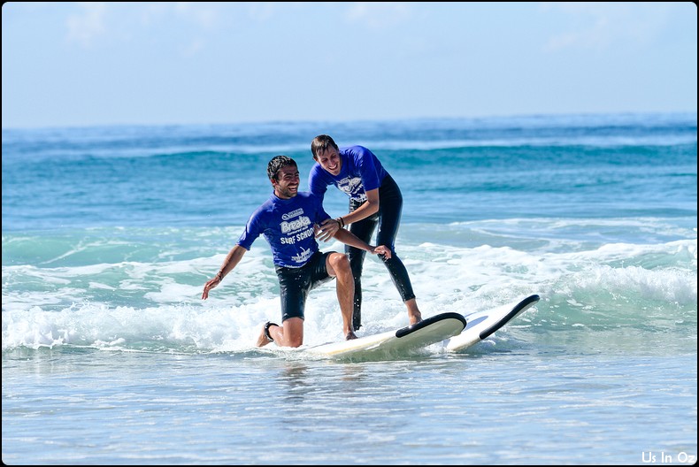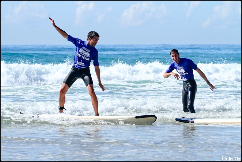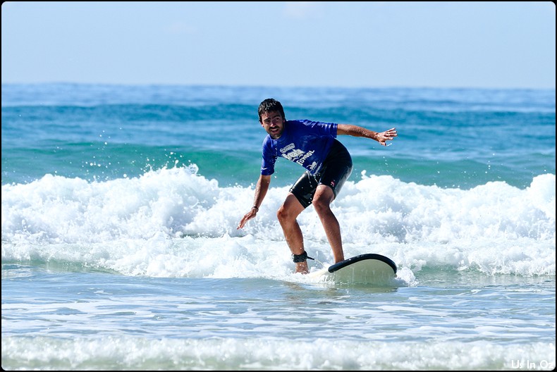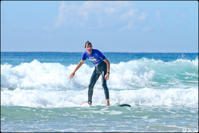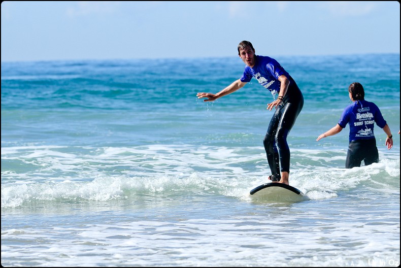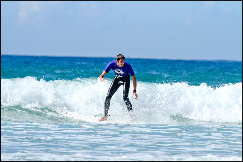 2h de surf à Collum, on passe toute les étapes, d’abord la tête dans l’eau, les collisions, et on fini par tenir debout sur la planche pendant quelques dizaines de mètre, Body était avec moi 🙂